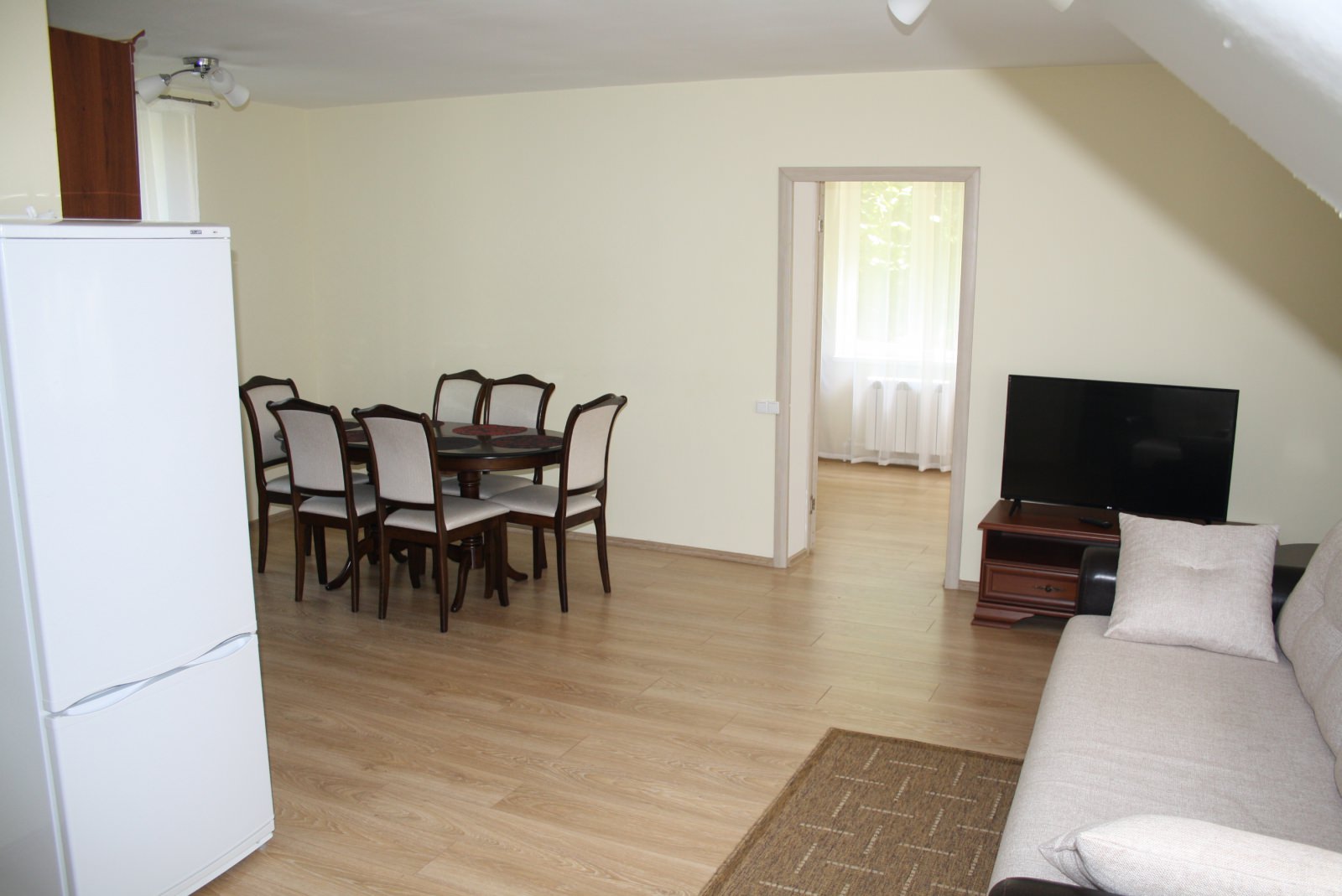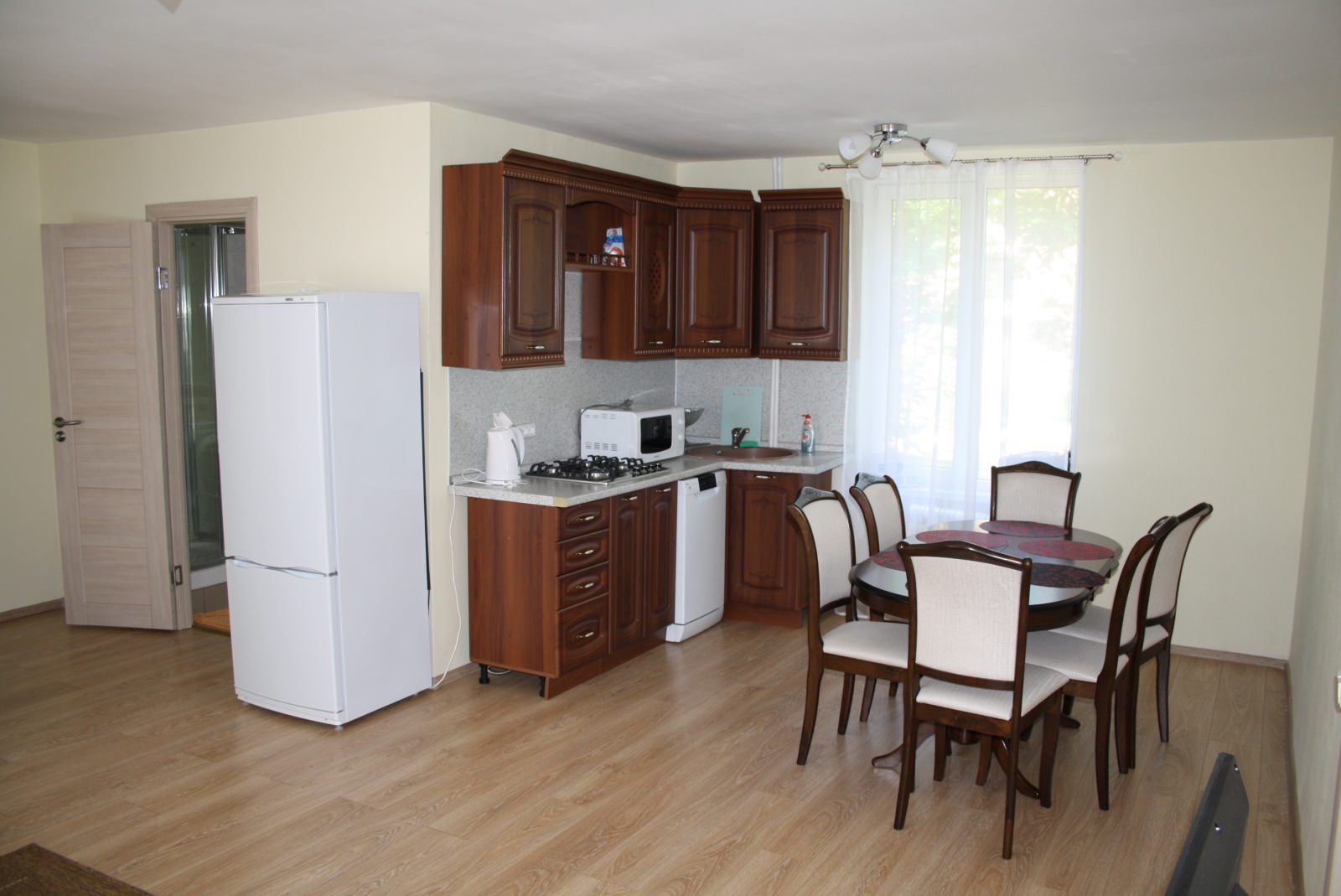 Гости смогут воспользоваться телевизором, стиральной и посудомоечной машинами, имеется СВЧ печь, холодильник и электрочайник, а также набор посуды.